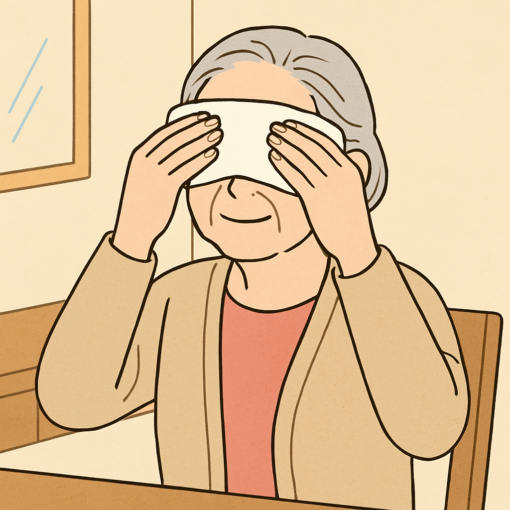 눈꺼풀에 따뜻한 찜질을 하면 기름층 분비가 촉진되어 눈물 증발을 막아줍니다.